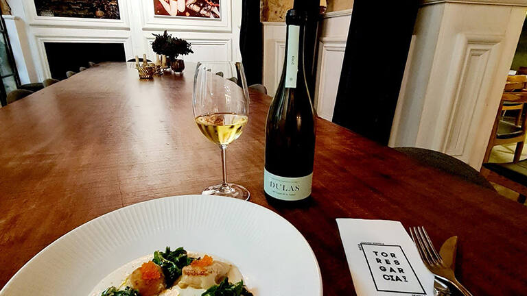 Dulas Tinto Francés & Foiegras plancha con peras al vino, avellanas y hierba buena.